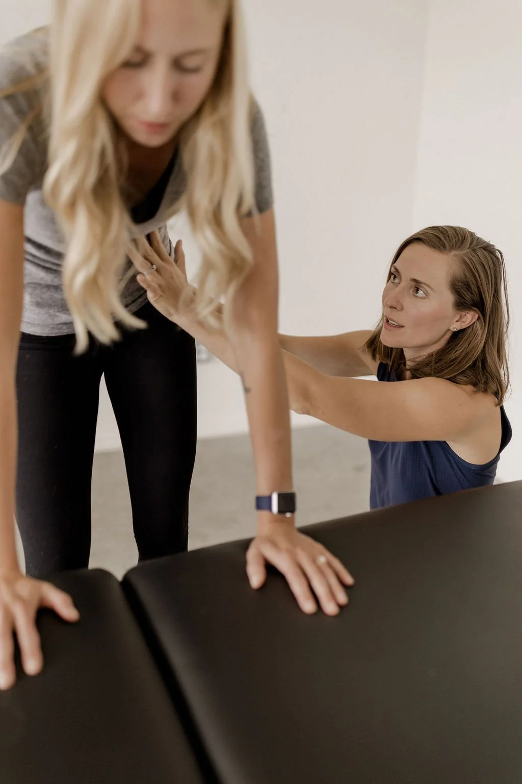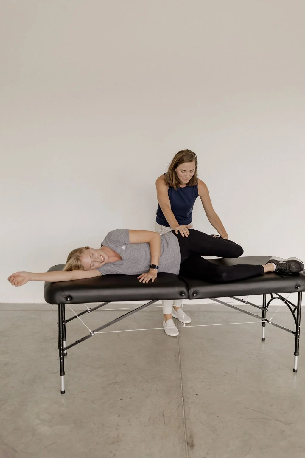 Your first visit begins with a relaxed conversation about your story, concerns, and goals — no rushing, no judgment. From there, Dr. Katie will complete a head-to-toe evaluation, watching how you walk and move, and performing gentle tests to assess your posture, breathing patterns, and overall body coordination to problem solve what is contributing to your problem.